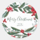Merry Christmas! elegant typography simple minimalist business stickers , perfect for winter and Christmas season with red and green floral illustration on white. A festive design to thank your customers.