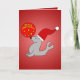 Greeting card template with seal with Santa's hat playing with ball with Merry Christmas text and stars