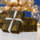 This enchanting Merry Christmas holiday wrapping paper design features a silhouette deer couple in front of a golden glowing Christmas tree. ~