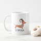 You can customise the Christmas dachshund dog mug with your name, the text size, text colour, font and layout for your own personal preference.