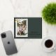 Merry Christmas Simple Elegant Photo Frame Modern Gold Foil Christmas Postcards features your favourite photo in a simple white frame accented with greenery and gold glitter on a green background with a "Merry Christmas" gold foil calligraphy script overlay. Personalise by editing the text in the text boxes provided. Designed by ©Evco Studio www.zazzle.com/store/evcostudio