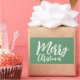 Merry Christmas Simple Girly White Script Green Rectangular Sticker