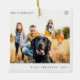 Simple minimalist typography Merry Christmas custom photo, family name, and year tree ornament.