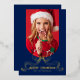 Merry Christmas Simple Modern Coquette Bow Photo Foil Holiday Card