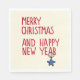 Merry Christmas Simple Modern Typography Christmas Paper Party Napkins features the text "Merry Christmas and Happy New Year" in modern red script typography on a cream background accented with a simple star decoration. Perfect for Christmas parties and celebrations. Designed by Evco Holidays www.zazzle.com/store/evcoholidays