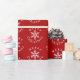 This wrapping paper features a simple geometric snowflake with “Merry” above and “Christmas” below on a deep red background. Featuring original art from Dogwood & Thistle. The text is editable directly on the product page so you can change it to another greeting, or the recipients name.