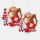 Merry Christmas SlipperyJoe red white silver gift boxes bows muscular male chest shirtless man holiday ornaments artistic tree festive background six-pack stomach gay pride gifts LGBTQIA bold unique holiday cheer various wrapped presents