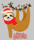 This design features a festive sloth hanging from a tree branch with the modern text " Merry Christmas" popular red typography.
