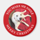 Merry Christmas Smiling Dog Photo Funny Red Round Magnet