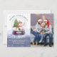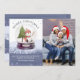 This modern Christmas Card features a watercolor snow globe with a cute snowman with the text "Merry Christmas". Personalised with your own text and favourite photo accented with blue glitter #christmas #christmascards #personalised #personalizedcards #photocards #holidaycards #snowman #winter #holidays #festive