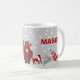 Merry Christmas Modern Hand Painted Woodland Animals Snow Personalised Coffee Mug will cheer up any bah humbug holiday attitude. A cheeful moose with a wreath collar perching on his antler, a bear with an ugly snowflake sweater, foxes, bunnies with gifts, deer and presents dress up this design. All on a background of polka dot snow. Just makes you want to smile. Top that off with an opportunity to customise with a name, just easily personalise it. This cheerful mug will get someone through winter with a lot of hot chocolate.