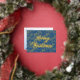 Merry Christmas snowflake elegant script navy blue Foil Holiday Postcard