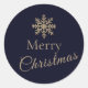 Add a touch of elegance to your holiday mailings and packages with this beautiful round sticker. The deep navy blue background is adorned with a brushed gold snowflake at the top, symbolising the serene beauty of the season. Beneath it, "Merry Christmas" is elegantly presented in classic typography and script, capturing the spirit of tranquillity and goodwill. Perfect for adding a heartfelt touch to your festive greetings, these stickers are a charming way to spread joy and warmth this holiday season. Use them to seal envelopes, decorate gift wrap, or adorn holiday favours. Elevate your holiday presentation with this captivating and meaningful design.