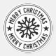 A black and white emblem with the words "Merry Christmas" repeated along the top and bottom perimeter of the label on a black background. Snowflake in centre.