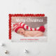 Send your season's greetings this year with this 'Merry Christmas' holiday photo card including white snowflakes over a red background on the back of the card. Easily customise with your photo, message and name.
