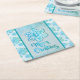 Merry Christmas Snowflakes Iridescent Blue Square Paper Coaster
