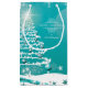 A pretty design of a Christmas Tree adorned with decorations. Vines, white flowers and snowflakes surround the holiday greeting. The centre is the traditional Merry Christmas message. All set on a beautiful aqua, cyan and teal gradient ombre background.