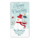 Trendy Merry Christmas Snowman and birds Christmas labels. A festive snowman with 2 little birds is shown against a starry and snowy winter background. Customise with your own text and names. Perfect for adding to your Christmas mailings, hampers, baked goods and more.