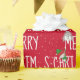 White Merry Christmas font with snowman and pine tree with hat on red background with snowflakes.