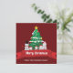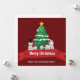 This cute Christmas card features an adorable snowman family drawing in front of a beautiful Christmas tree. The festive red banner is customised with your own text and the back can be personalised with your own holiday greeting for Xmas.
