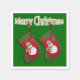 Merry Christmas Snowman On Stocking Over Green Napkin