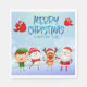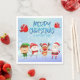Add some fun to your holiday christmas party and events with this cute winter snowy merry christmas napkin with Rudolph the red nosed reindeer, santa claus, an elf and snowman.