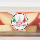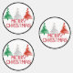 A fun Christmas-themed design featuring spiral trees in green, silver, and red. Merry Christmas spelled out with red and white candy cane stripes! White background with snow falling.