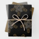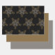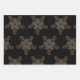 The design features the holiday wish "Merry Christmas," in gold and silver font, in the form of a most elegant, artistic calligraphy in the shape of a star. It is a wonderful representation of the Christmas spirit. The pattern of repeated stars is placed against a black background. The brilliant combination of the colours silver, gold, and black brings on the sense of elegance and sophistication to your special gifts.