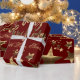 Merry Christmas Stars Red and Faux Gold Elegant Script, Stylish Christmas Gift Wrapping Paper, Add Name or Text