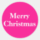 Merry Christmas Hot Pink Round Stickers with stylish White Script on Hot Pink background. Round sticker set of 20 stickers. 30 Day Money Back Guarantee. Ships Worldwide fast..