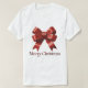 A classic and festive design featuring a bright red ribbon tied in a neat bow, accompanied by the phrase "Merry Christmas" in elegant typography. The design embodies the spirit of gift-giving, joy, and holiday celebration.
