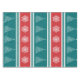 Merry Christmas illustration with Christmas tree and snowflakes decoration on red, white, blue and turquoise striped background