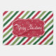Merry Christmas illustration with text and snowflakes design on red, white and green striped background
