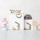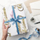 Merry Christmas Pattern Typography Elegant Chic White and Gold Look Text, Glossy Gift Wrapping Paper Holiday Season Christmas Gifts
