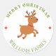 Merry Christmas text reindeer white Classic Round Sticker
