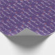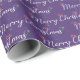 White Merry Christmas greeting text with red hat, green tree, and white sparkles on purple background.