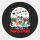 Merry Christmas Three Santa Elf Reindeer Papillons Classic Round Sticker