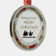 This festive THREE WISE MEN Ornament shows a silhouette depicting the Three Magi following a star. The curved text at the bottom is a Scripture verse from Galatians 4:4 - JUST AT THE RIGHT TIME, GOD SENT HIS SON. This curved text is CUSTOMIZABLE so you can replace with your name or other choice of wording. In the middle there is MERRY CHRISTMAS in gold typography. The background image is a festive Christmas wreath. Lovely gift for neighbours, family and friends.