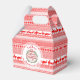 Customisable Merry Christmas with traditional vintage graphic favour box (gable). Your name and message on beautiful Lapland style pattern in red and white background. Other models are available; Matching personalised Christmas Paper napkin, paper plate and more...