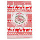 Customisable Merry Christmas with traditional vintage graphic medium gift bag box. Your name and message on beautiful Lapland style pattern in red and white background. Other models are available; Matching personalised Christmas craft products, Paper napkin, paper plate and more...