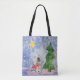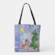Tote Bag all over print style over the shoulder style fashion statement accessory printed with Merry Christmas Tree And Frosty Snowman Watercolor painting original artwork design and select products collection by TheFabricSeal print on demand shop at Zazzle.com #ZazzleMade https://www.zazzle.com/store/thefabricseal TheFabricSeal©️Original.