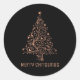 Merry Christmas Tree Black Metallic Brown Copper Classic Round Sticker