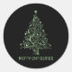 Merry Christmas Tree Black Metallic Green Classic Round Sticker