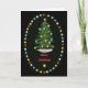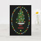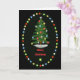 Merry Christmas greeting card with a Christmas tree on front and a teddy bear stocking on back. Inside text can be personalized to fit your family needs.