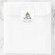Merry Christmas sticker features a watercolor scene of a classic car with a Christmas tree on the roof. Personalise with your family name.