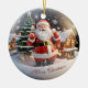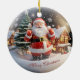 Beautiful Christmas round Ornament featuring Santa Clause, snowclad houses, Christmas tree, falling snow, & "Merry Christmas" written in beautiful red script. Perfect Christmas gift for your loved