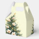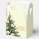 This favor gift box is printed on with a single Christmas tree in green. Festive text of Merry Christmas wraps around the box on ivory color background with small decorative gold stars.