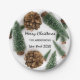 Merry Christmas Tree Green White Snow Minimal Paper Plate