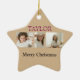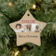 "Make your holiday decor truly special with this custom Merry Christmas ornament. Featuring a star motif and space for your child's photos and name, it's a unique keepsake that shines with love and festive cheer. Ideal for decorating your own tree or gifting to grandparents, godparents, or loved ones who adore your little star."