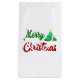 Gift bags with Merry Christmas in 3D green and red text and a Christmas tree. Gift bag is available in multiple sizes.